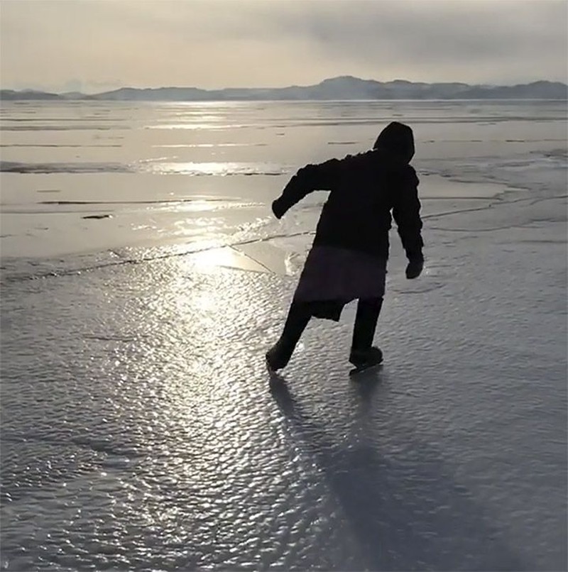 Sambil bermain ice skating, ia menjaga hewan-hewan ternaknya. Seperti ayam, sapi, dan lembu. Foto: Boris Slepnyov/Kopeyka
