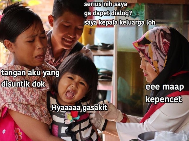 Momen Kesehatan yang Jadi Lucu Karena Ilustrasi Ngawur BAGIKAN URL telah disalin Anak yang diimunisasi, ibunya yang jerit. (Foto: Instagram/jokesreceh) Dirapihin aja ya bang, terserah gayanya. (Foto: Instagram/jokesreceh) Jawaban logis calon insinyur. (Foto: Instagram/jokesreceh) Hemm... di manakah sumber masalah pernapasan si ibu? (Foto: Instagram/jokesreceh) Napas buatan dan pijat jantung sepertinya tidak akan terlalu menolong. (Foto: Instagram/jokesreceh) Pelayanan terbaik nomor satu di kelasnya. (Foto: Instagram/jokesreceh) Yak tahan, terus ganti posisi sebelah kirinya. (Foto: Instagram/jokesreceh) Ini gerakan olahraga apa? Ada yang tahu? (Foto: Instagram/jokesreceh)