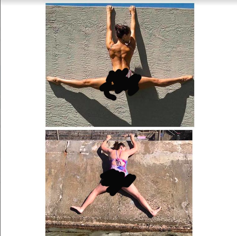 Celeste Barber hanya ingin mengajak kita semua untuk lebih percaya diri dengan diri sendiri dengan mengunggah foto selebriti yang tampak 'sempurna' dan dibandingkan dengan foto dirinya saat sedang mencoba berpose dengan gaya yang sama. (Foto: Instagram/celestebarber)