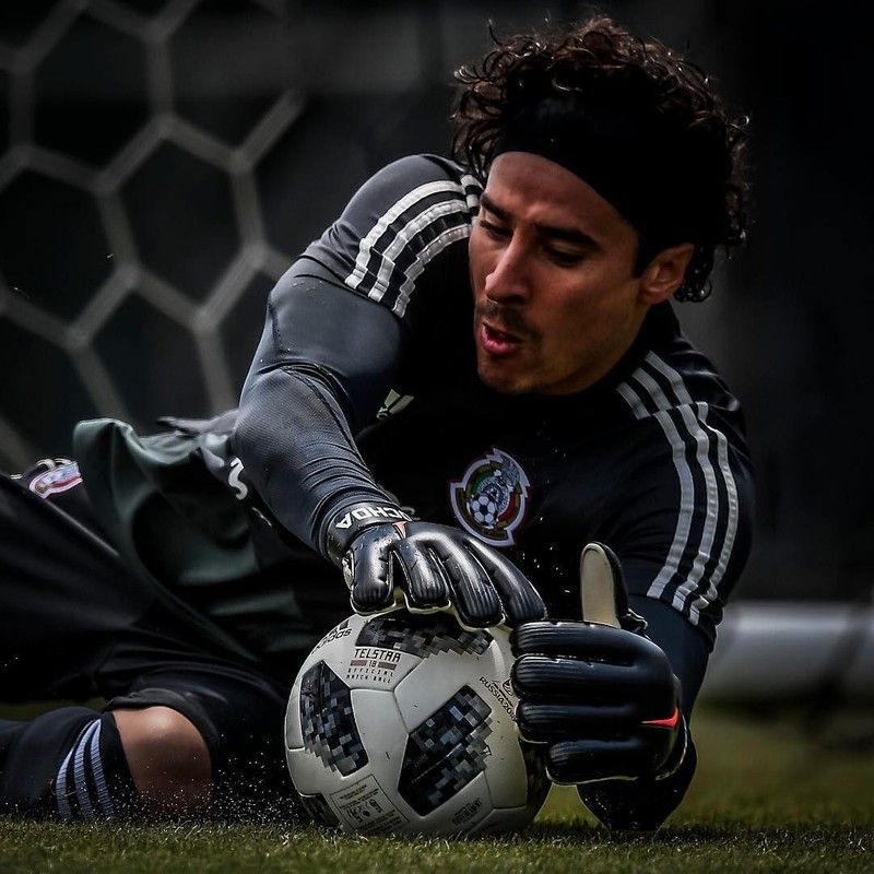 Guillermo Ochoa, kiper timnas Meksiko yang berhasil menahan gawangnya dari kebobolan saat melawan skuad Jerman, Minggu (17/6/2018). (Foto: Instagram/yosoy8a)