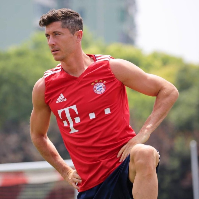 Lewy yang juga striker Bayern, termasuk pesepakbola yang punya tubuh kekar dan perut sixpack. Foto: Instagram/annalewandowskahpba
