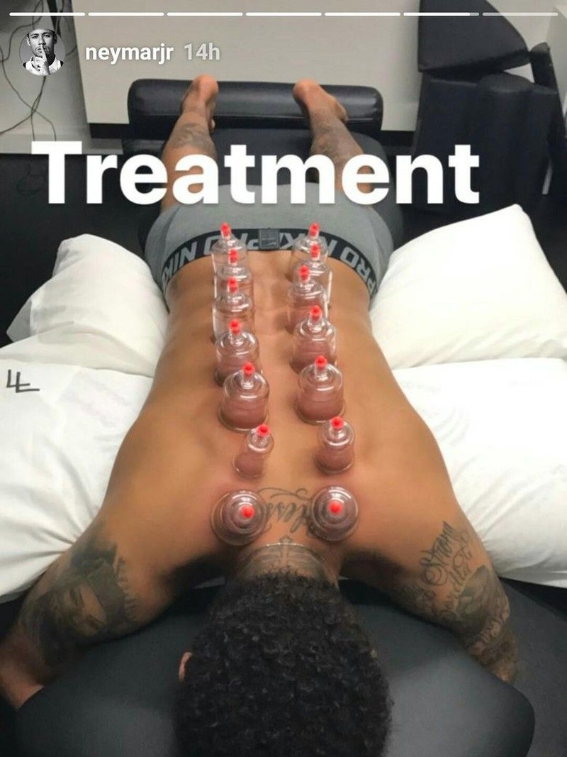 Penyerang Brazil di Piala Dunia 2018 Neymar melakukan terapi bekam untuk membantunya kembali fit sebelum bertanding. (Foto: Instagram)