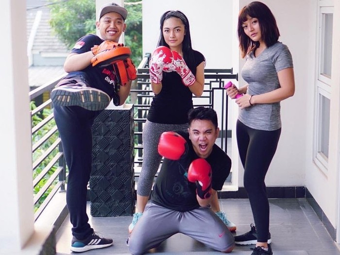 Siti Badriah yang kerap disapa Sibad tampak mencoba latihan boxing. Olahraga ini bagus untuk mengencangkan otot sekaligus membakar kalori. (Foto: Instagram/sitibadriah)