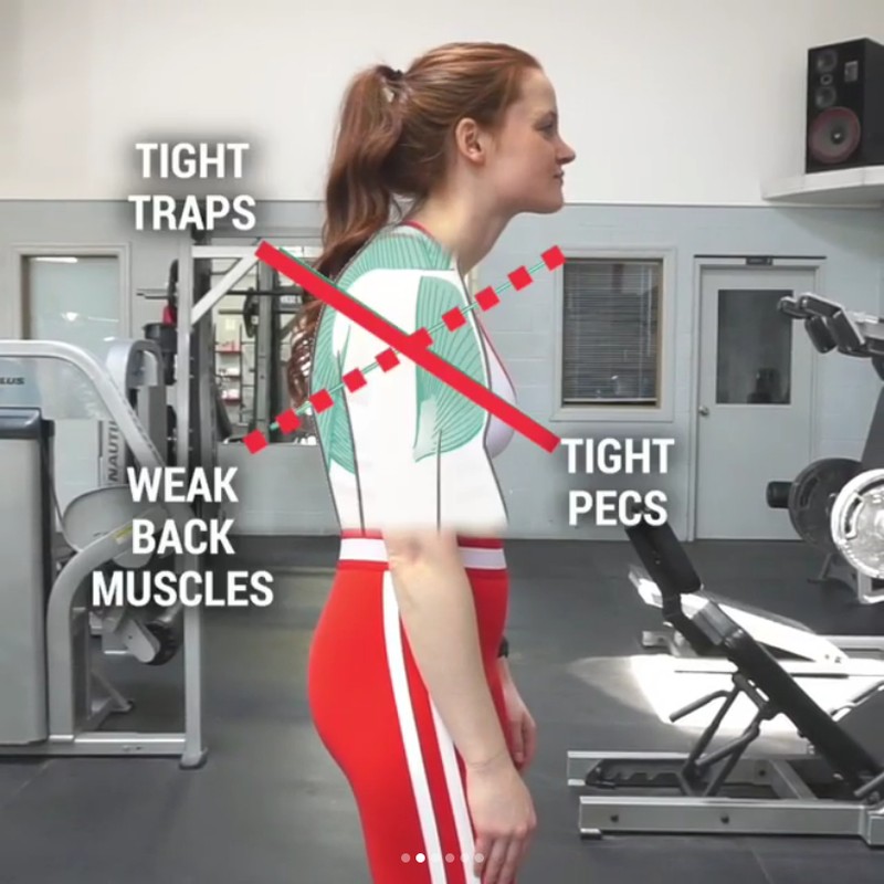 Postur tubuh yang buruk membuatmu sering mengalami pegal dibagian bahu leher, sakit kepala, otot belakang yang lemah, dan dada yang tegang. (Foto: Instagram/ampollo)