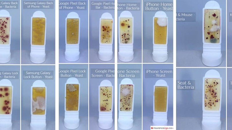 Para ilmuwan dalam survei ini melakukan usapan pada berbagai permukaan smartphone, lalu membiakkan mikroba yang didapat ke dalam media tertentu. (Foto: Insurance2go)