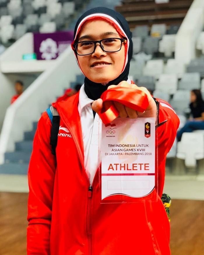 Puspa Arumsari adalah atlet Pencak Silat Indonesia yang berhasul menyumbangkan emas ke 13 bagi Indonesia di Asian Games 2018, ia lahir pada 10 Maret 1993. (instagram/arumdara)
