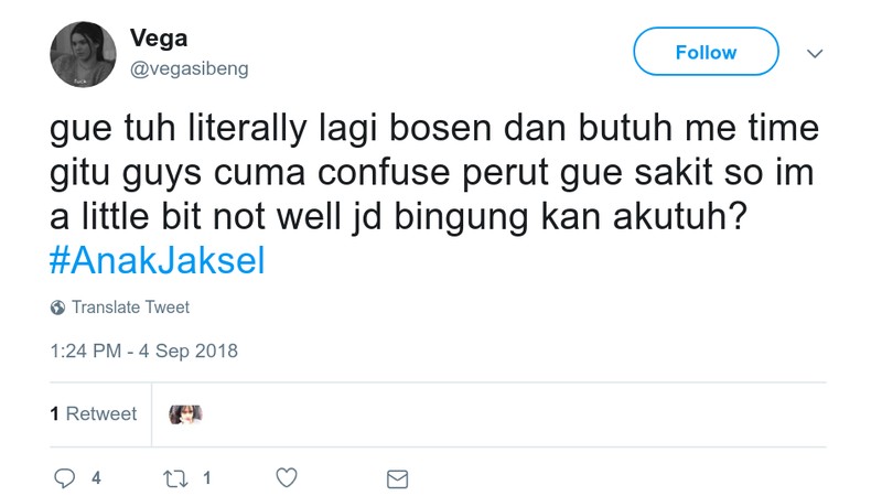 Di internet sedang viral stereotip warga Jakarta Selatan (Jaksel) menggunakan bahasa Indonesia yang dicampur Inggris. (Foto: Screenshoot Twitter)