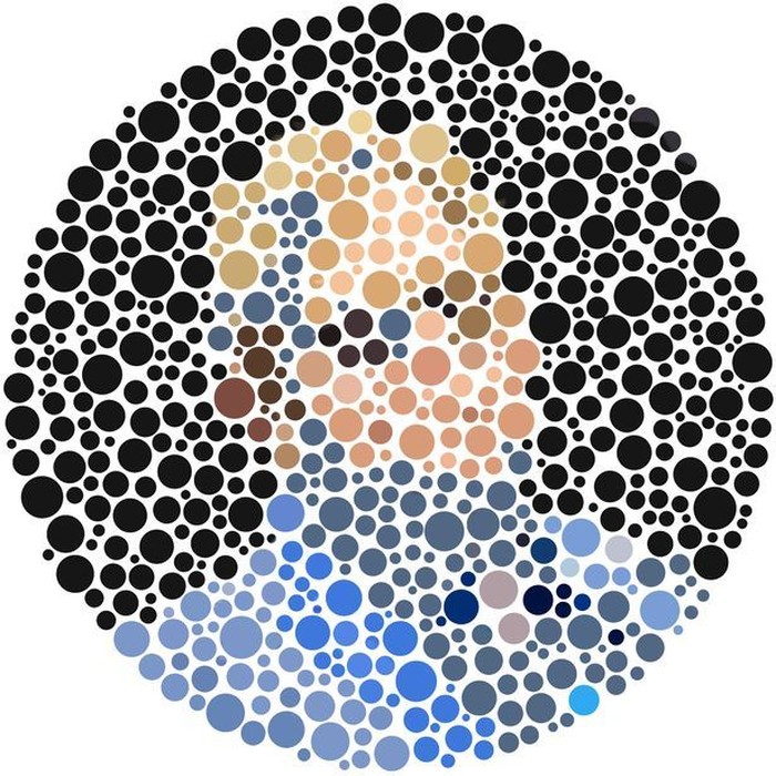 Ada 4 wajah pesohor yang diolah sedemikian rupa menjadi titik-titik berpola dengan kombinasi warna yang membuat wajah-wajah tersebut jadi tersamar. Bisakah menebak ini wajah siapa? (Foto: Optical Express)