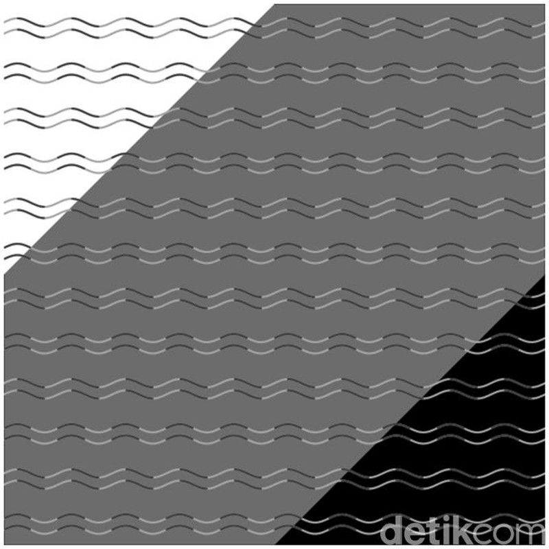 Jawabannya hanya ada satu garis yaitu bergelombang saja. Warna latar belakang yang berbeda menipu otak kita untuk melihat ada dua jenis garis. (Foto: detikHealth)