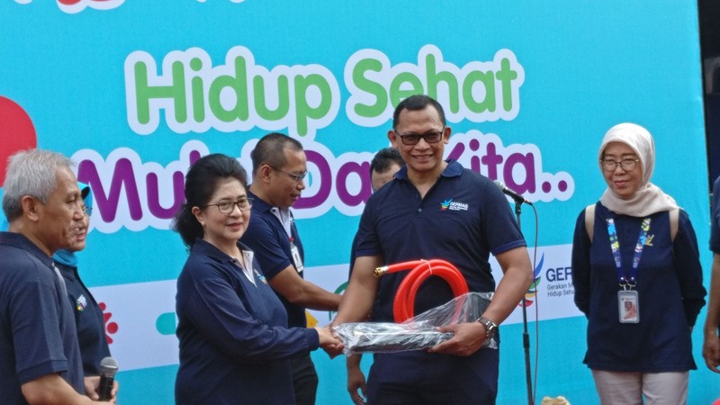 Saat berkunjung ke Pasar Kramat Jati pada Jumat (19/10) Menkes Nila memberikan bantuan alat kebersihan untuk pengelola pasar. (Foto: Firdaus Anwar/detikHealth)
