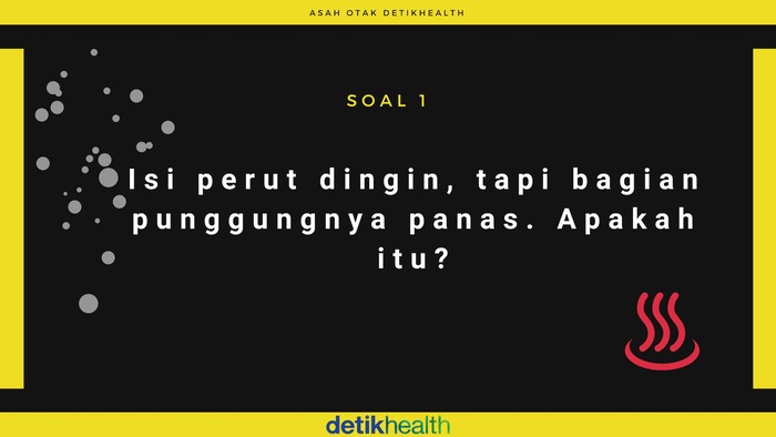 Hai Healthyfriends! Otak yang sehat adalah otak yang secara aktif terus dipakai dan ditantang untuk berpikir. Sederet soal berikut akan membantu otakmu sehat dalam hadapi hari senin. Coba dulu tebak apa jawaban soal pertama ini! (Foto: detikHealth)
