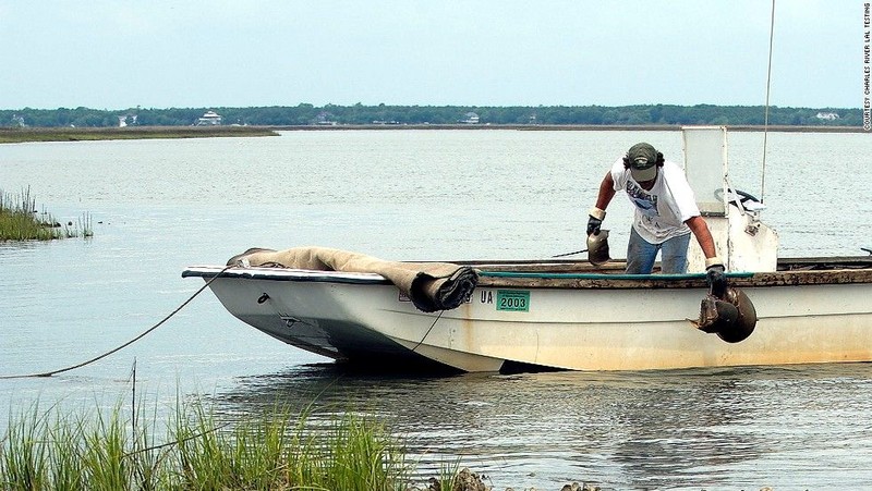 Usai darahnya dipanen, belangkas dikembalikan ke habitat asal. Kini penangkapan semakin berkurang karena peneliti berhasil mengembangkan senyawa sintesis dari darah belangkas. (Foto: Charles River Laboratories/CNN)