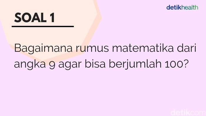 Pemanasan dulu.. ayo coba ada yang bisa melakukan operasi matematika dari angka 9 untuk mendapatkan jumlah angka 100? (Foto: detikHealth)