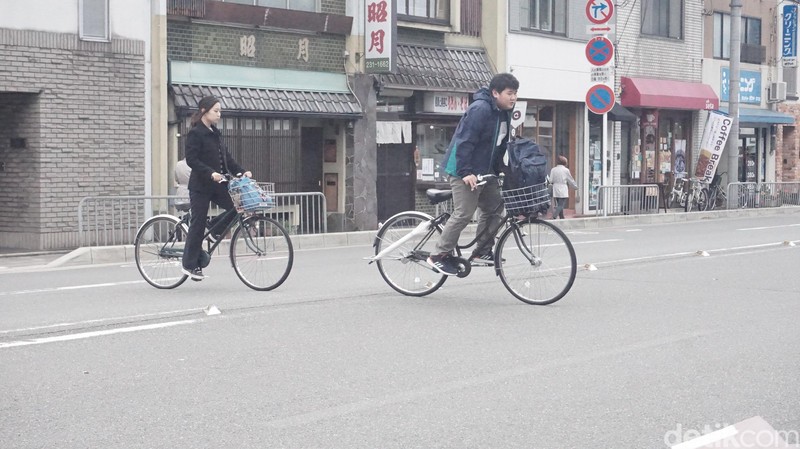 Gowes! Bukti Kalau Orang Jepang Hobi Banget Naik Sepeda BAGIKAN URL telah disalin Sepeda adalah salah satu transportasi yang sering dipilih warga Negeri Sakura. (Foto: detikHealth) Sepanjang mata memandang area Kyoto, Jepang, ada banyak sekali sepeda yang terparkir di depan toko-toko. (Foto: detikHealth) Sepeda yang paling sering digunakan sehari-hari adalah 'mamachari' atau 'sepeda mama', seperti dikutip dari Japan Guide. (Foto: detikHealth) Tua dan muda, semua bergembira bersama mengayuh sepeda. (Foto: detikHealth) Asiknya! (Foto: detikHealth) Kalau kamu tertarik sepedaan di Jepang, bisa juga lho menyewa di tempat rental. (Foto: detikHealth) Sepedaan yuk! (Foto: detikHealth)