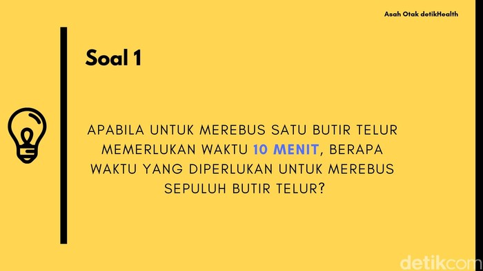 Soal pertama mungkin terlihat mudah, namun jangan terkecoh. Ayo tantang otakmu lagi untuk berpikir lebih kreatif! (Foto: detikHealth)
