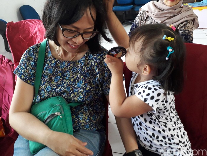 Yang ini, sesi aplikasi terapi How to Handle Them dari health advisor Octorina Basushanti kepada Afi Hadid Rizki. Bocah berusia 4 tahun 8 bulan ini ini mengaku takut jika mendengar suara keras dari sound system maupun orang-orang di sekitarnya. Foto: Rosmha Widiyani/detikHealth