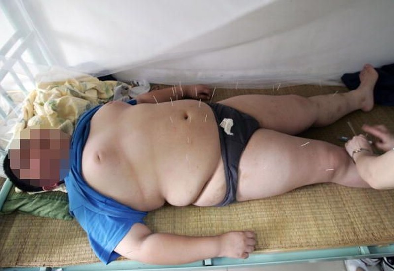Anak-anak yang dititipkan oleh orang tuanya dalam kamp ini menjalani berbagai macam terapi untuk menguruskan badan termasuk akupunktur. (Foto: China Photos/Getty Images)