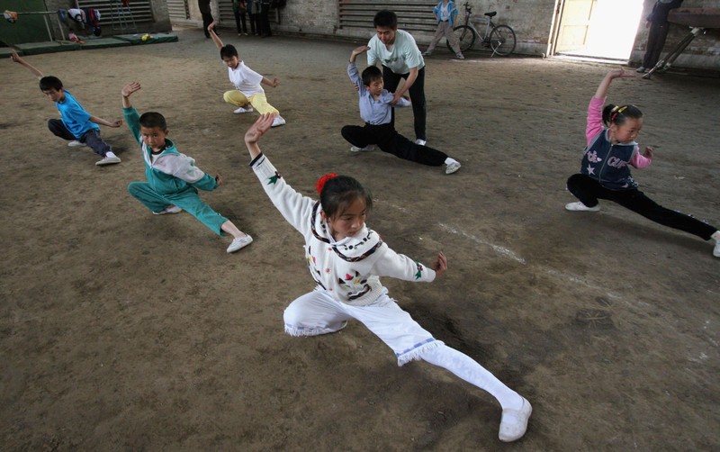 Biasanya kalau lihat orang berlatih Kung Fu ya di film-film. Akan tetapi di dunia nyata, bela dirinya Bruce Lee ini sangat diminat bahkan terus diturunkan ke anak-anak berbagai negara salah satunya di China. (Foto: Getty Images)