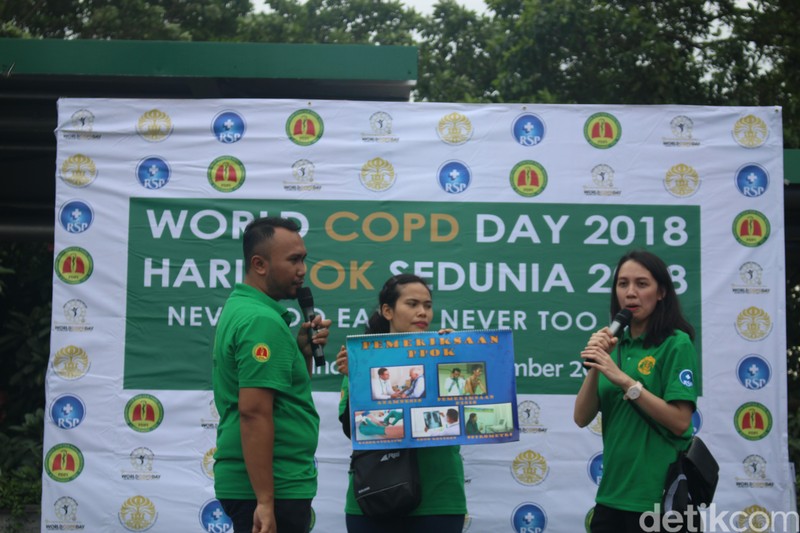 Acara ini diisi oleh sosialisasi pengenalan Penyakit Paru Obstruktif Kronik (PPOK) kepada masyarakat yang sambil berolahraga. (Foto:Kireina/detikHealth)