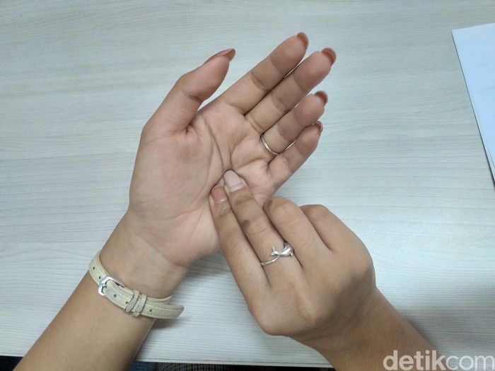 Gunakan ibu jari untuk memijat area telapak tangan di sepanjang sisinya dan ulangi sebanyak tiga kali. Pijatan ini dapat membantu mengurangi ketegangan di seluruh tubuh. (Foto: detikHealth)