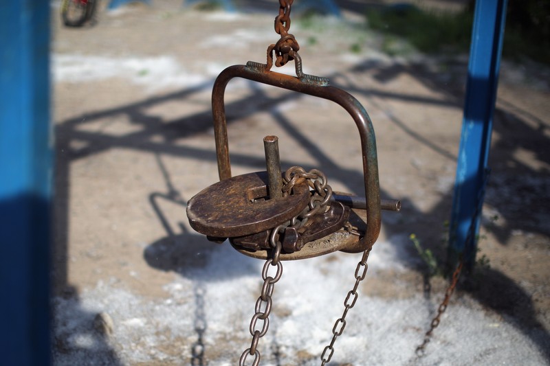 Rongsokan logam, rantai, kendaraan, ban, hingga batu dimanfaatkan untuk membuat alat seperti yang biasa ada di gym berlangganan. (Foto: Dan Kitwood/Getty Images)