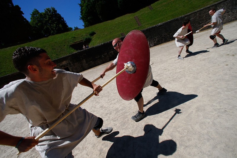 Mau Coba Olahraga Bela Diri Ala Petarung Gladiator? BAGIKAN URL telah disalin Di sekolah ini kamu dilatih bagaimana caranya melakukan petarungan seperti seorang gladiator. (Foto: Ralph Orlowski/Getty Images) Sekolah berlokasi di ampiteater bergaya Romawi kuno di kota Trier. (Foto: Ralph Orlowski/Getty Images) Ekspresi Jan Krueger push up saat mengikuti sekolah gladiator. (Foto: Ralph Orlowski/Getty Images) Lari melatih stamina agar tidak mudah kelelahan saat berjalan jauh sambil membawa peralatan. (Foto: Ralph Orlowski/Getty Images) Naik turun tangga menambah beban ekstra daripada aerobik lari biasa. (Foto: Ralph Orlowski/Getty Images) Calon peserta dapat memiliki ikut paket kelas gladiator satu atau tiga hari. (Foto: Ralph Orlowski/Getty Images) Karena ini sekolah gladiator maka peralatannya juga mengikuti. (Foto: Ralph Orlowski/Getty Images)