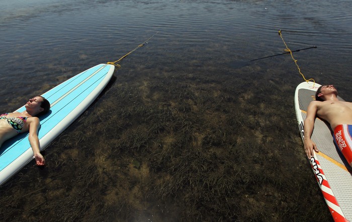 Jakarta - Yoga di tengah laut dengan memakai papan dayung bisa jadi olahraga yang dibutuhkan bagi kamu penggemar aktivitas air.