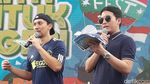 Duo Vincent dan Desta saat ditemui dalam acara ulang tahun Badan Pengawasan Obat dan Makanan (BPOM), Minggu (10/02/2019). Keduanya kelihatan semangat dan profesional meski bekerja di akhir pekan. (dok. Rosmha Widiyani/detikHealth)