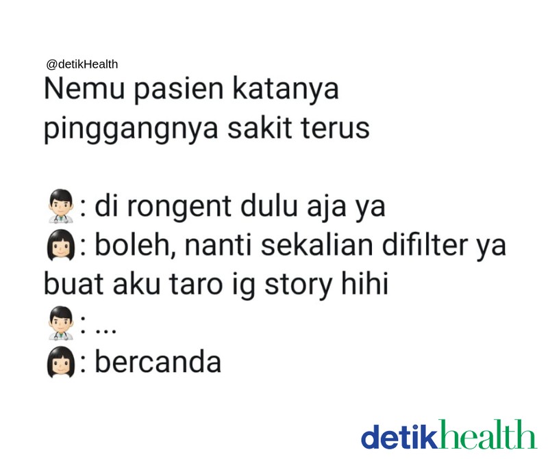 Wkwk! Meme Percakapan Dokter dan Pasien Ini Bikin Ngakak BAGIKAN URL telah disalin Percakapan khayalan antara dokter dan pasien ini bikin emosi banget ya. (Foto: detikHealth) Ya enggak gitu juga kali, haha. (Foto: detikHealth) Lah, dianya juga sakit gigi, haha. Bisa aja nih pak dokter bercandanya. (Foto: detikHealth) Hmm siap siap. (Foto: detikHealth) Ateam alias fansnya Atta Halilintar detected nih. (Foto: detikHealth)