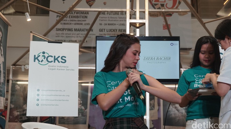 Aktris yang sekarang sedang aktif sebagai host di beberapa tayangan televisi ini dulunya nggak tertarik lho suntik HPV. (Foto: Khadijah Nur Azizah/detikHealth)