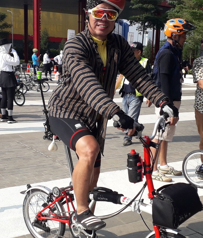 Kostum Kece Pesepeda Brompton, Tetep Gaya Meski Keringetan