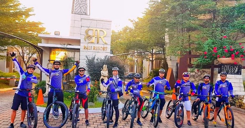 Bersepeda itu mempererat silahturahmi. Pada Juni lalu, komunitas @rawakalong.mtb gowes sekaligus kondangan salah satu rekannya yang sedang berbahagia. Sekaligus pakai jersey baru support dari detikcom. (Foto: Komunitas Gowes @rawakalong.mtb)