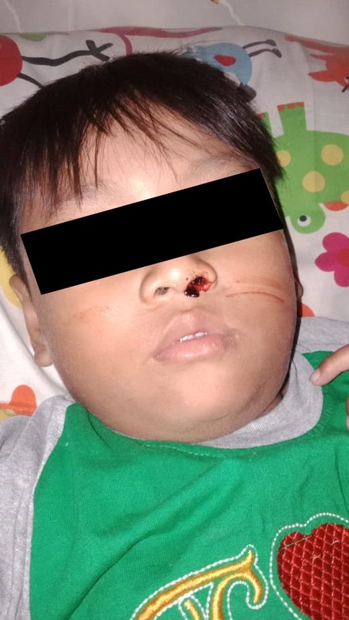 Selama sekitar 20 hari hidung anak berusia 4,5 tahun tersebut terus mimisan. Wajahnya juga jadi lebih pucat dan tidur mendengkur. (Foto: dok.pribadi/Puji)
