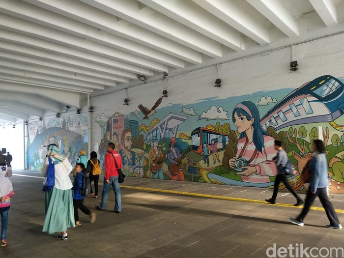 Terowongan Jalan Kendal merupakan jalur pedestrian sekaligus tempat yang nyaman untuk berolahraga. Tidak hanya nyaman, terowongan ini juga dilengkapi dengan mural artistik yang instagrammable. (Foto: Michelle Natasya/detikHealth)