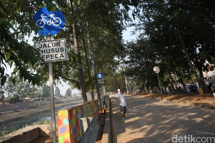 Selain cukup rindang oleh pepohonan di beberapa segmen, jalur ini juga dilengkapi dengan rambu-rambu pesepeda dan tempat istirahat. (Foto: Agung Pambudhy/detikHealth)