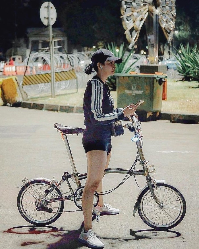 Vanessa Angel salah satu artis yang menyukai sepeda lipat Brompton. Menurut keterangan dari founder Komunitas Jakarta Sepeda Lipat (Jakseli), Phang Harianto, Vanessa masuk dalam komunitas Brompton. Foto: Instagram @fanessaangelofficial