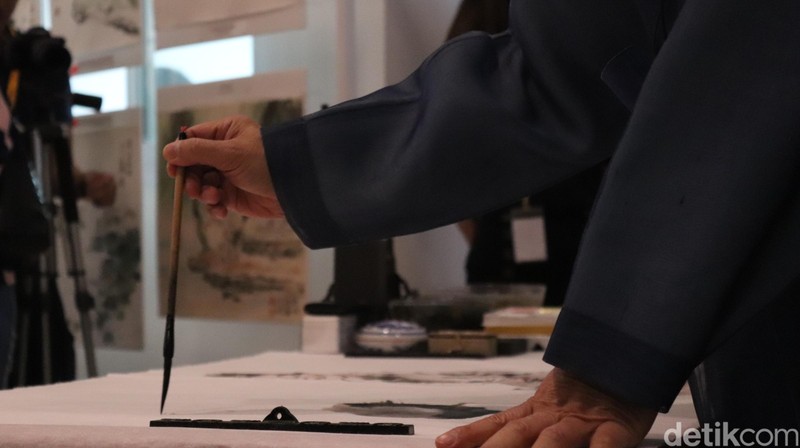 Goresan tinta saat melukis zen painting juga bisa untuk menuangkan perasaan. Foto: Nurul Khotimah/detikHealth