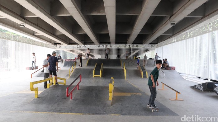 Jakarta - Saat ini, ada banyak spot menarik untuk olahraga di berbagai sudut kota Jakarta. Salah satunya adalah skate park di kolong flyover Pasar Rebo, Jakarta Timur.
