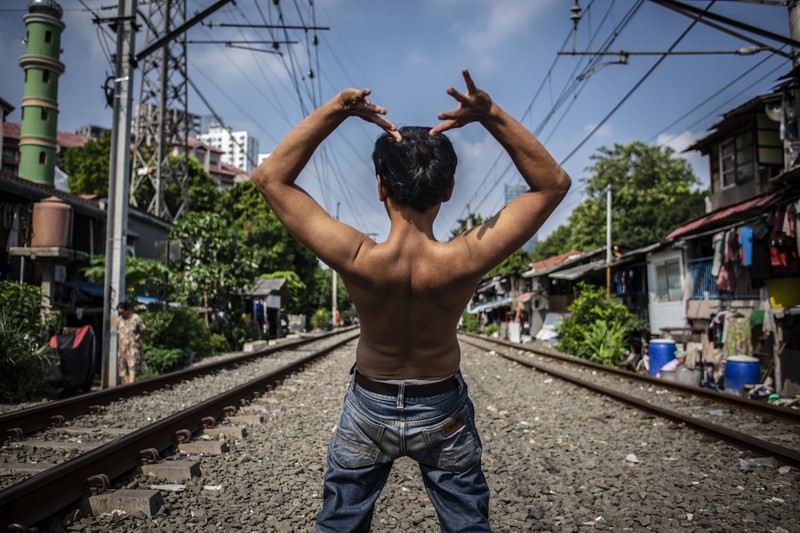 Di tengah pandemi COVID-19, warga yang tinggal di kawasan permukiman padat bantaran rel kereta api tersebut berusaha untuk tetap menjaga imunitas tubuh dengan berjemur dan berolahraga.