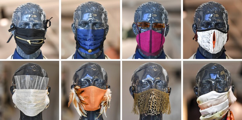 Inilah beberapa karya sang desainer dalam mencipta masker wajah yang aman namun tetap modis dan trendi. Kombinasi foto ini menunjukkan kreasi masker wajah buatan Couturier Wolf Schinke.