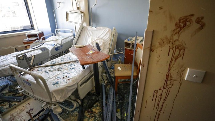 Beirut - Sebuah rumah sakit di kawasan Beirut, Lebanon, rusak berat akibat ledakan besar yang terjadi di kawasan tersebut. Berikut penampakannya.