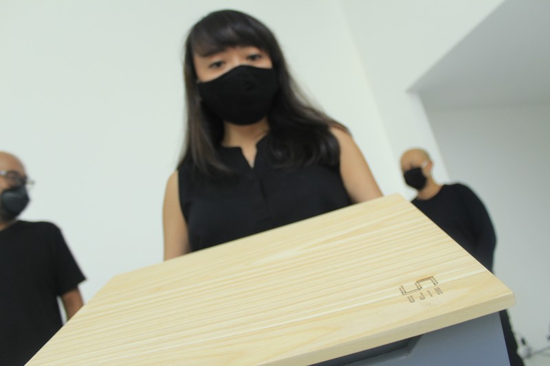 Disebut UJIN UVC Sterilizer, pengguna tinggal memasukkan barang, seperti jaket, tas, pakaian, atau sepatu ke dalam kotak untuk memulai proses disinfeksi. (Foto: Yudha Maulana/detikHealth)