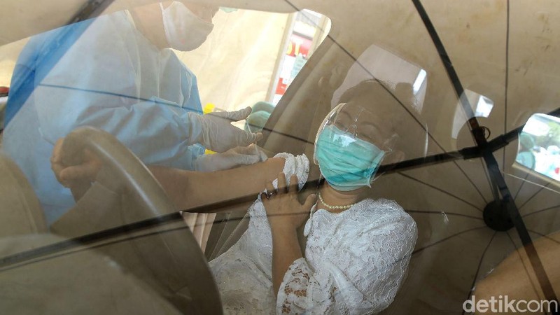 Asyik! Kini Warga Tangerang Bisa Vaksin COVID-19 Secara Drive Thru BAGIKAN URL telah disalin Petugas Vaksinator menyuntikan vaksin COVID-19 secara drive thru di ICE BSD, Tangerang, Banten, Sabtu (13/3/2021). Menteri Kesehatan Budi Gunadi Sadikin tampak hadir dan melihat pelaksaan penyuntikan vaksin secara Drive Thru tersebut. Kementerian Kesehatan bersama Grab dan Good Doctor meluncurkan Grab Vaccine Center dengan pendekatan 3-in-1. Hal tersebut mencakup jalur drive thru kendaraan roda empat dan roda dua serta walk in. Kegiatan vaksinasi tersebut ditargetkan mencapai 5.000 orang penerima vaksin. Kegiatan tersebut dilaksanakan hingga Minggu (14/3) besok. Pemeriksaan kesehatan dilakukan terlebih dahulu sebelum vaksin diberikan. Warga secara bergantian mulai melakukan disuntik vaksin. Ini momen saat vaksin disuntukan kepada warga. Bagaimana menurut Anda?