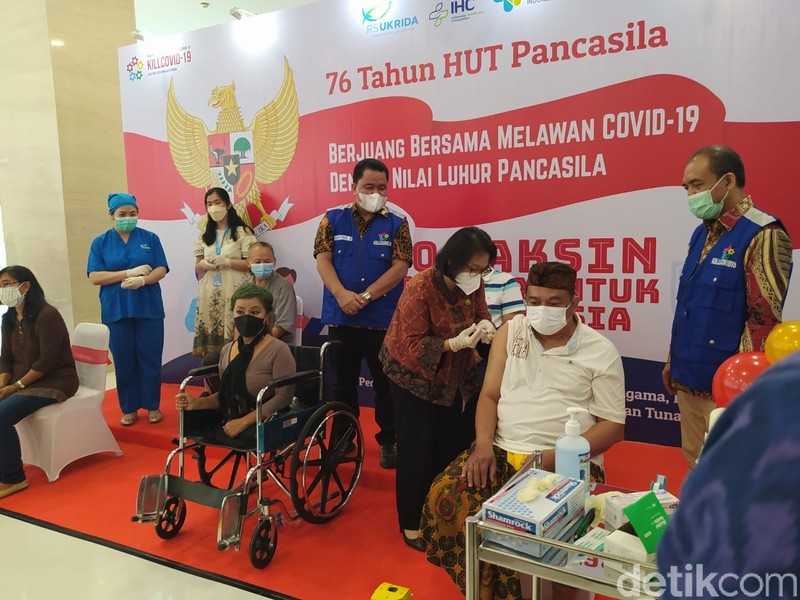 Sejumlah tokoh hingga penyandang disabilitas ikut divaksinasi Corona di RS Ukrida. Adapula aparat pelayanan publik, hingga pedagang.