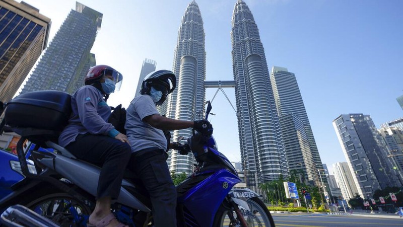 Malaysia kembali memberlakukan lockdown per Selasa (1/5/2021) untuk menekan ledakan kasus COVID-19. Walhasil, kawasan kantor dan mal yang biasanya padat di Kuala Lumpur kini bak kota mati. (Foto: AP Photo/Vincent Thian)