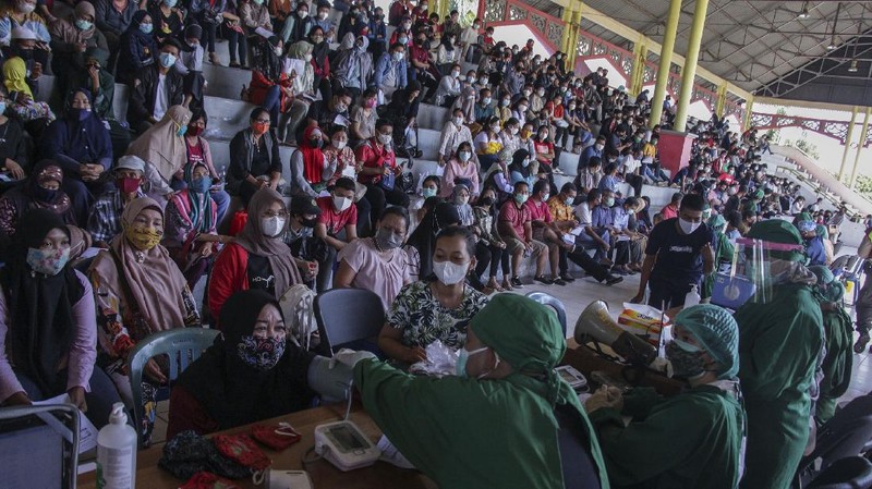 Percepatan vaksinasi ditujukan untuk menciptakan kekebalan kelompok (herd immunity) agar masyarakat menjadi lebih produktif dalam menjalankan aktivitas. ANTARA FOTO/RAISAN AL FARISI.
