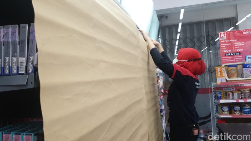 Tak Boleh Lagi Pajang Rokok, Kasir Minimarket Sibuk Pasang Penutup
