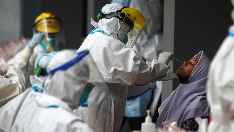 Belasan Siswa Positif Corona, SMAN 2 Bantul Gelar Tes Swab BAGIKAN URL telah disalin Petugas kesehatan melakukan swab terhadap siswa SMAN 2 Bantul, DIY, Sabtu (5/2/2022). Tidak hanya siswa, para guru juga diswab. Swab ini dilakukan setelah belasan siswa di sekolah tersebut terkonfirmasi positif COVID-19. Pembelajaran tatap muka (PTM) di sekolah itu dihentikan hingga pekan depan menyusul belasan siswa yang terkonfirmasi positif COVID-19.