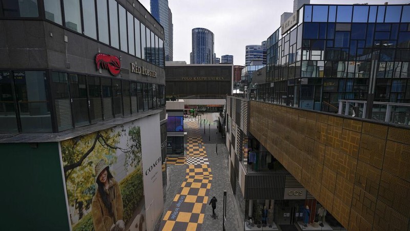 Begini suasana di salah satu pusat perbelanjaan Beijing saat China menerapkan pembatasan ketat di kawasan itu imbas penyebaran virus Corona, Senin (9/5/2022).