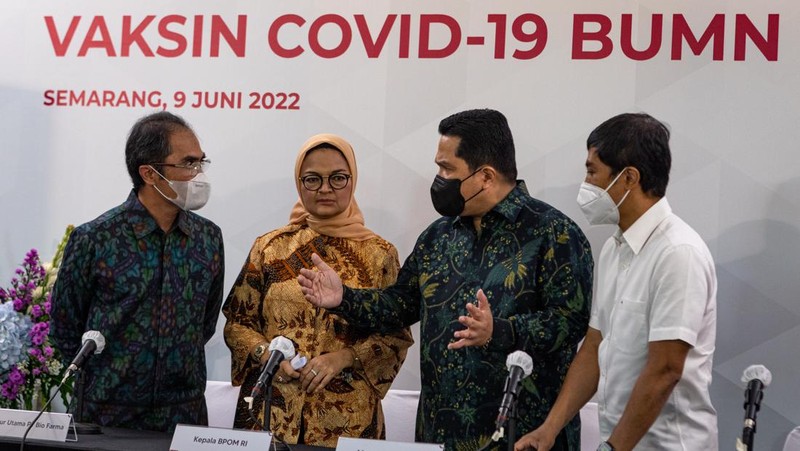 Vaksin COVID-19 BUMN kolaborasi PT Biofarma, Baylor College of Medicine, dan Eijkman menggunakan platform protein rekombinan sub-unit tersebut ditargetkan memperoleh Izin Edar Darurat (Emergency Use Authorization/UEA) pada Juli 2022 mendatang dengan persiapan kapasitas produksi sebesar 120 juta dosis per tahun.